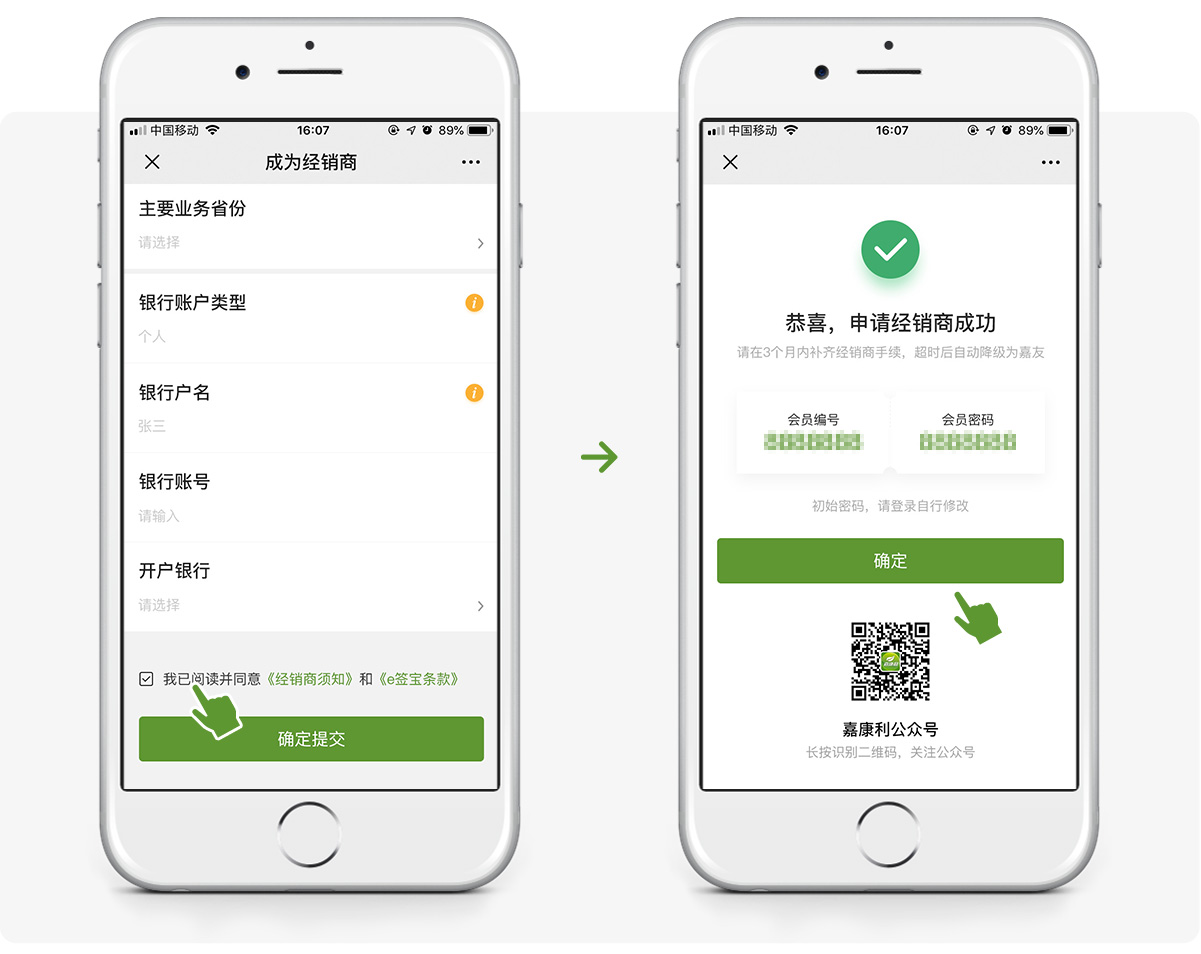 打开公众号,点击“加入会员”,并选择“注册成为经销商”